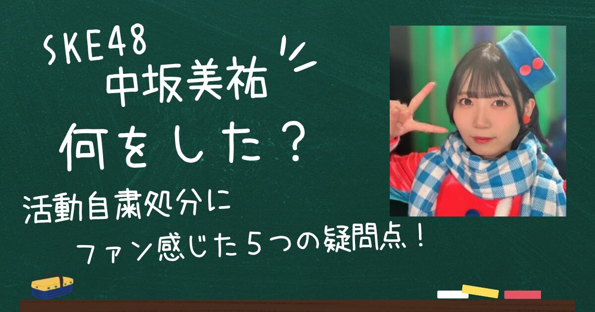 このSKE48の中坂美祐さんの活動自粛処分の報道について、不明瞭な点が多く、ファンの間ではさまざまな憶測が飛び交っています。